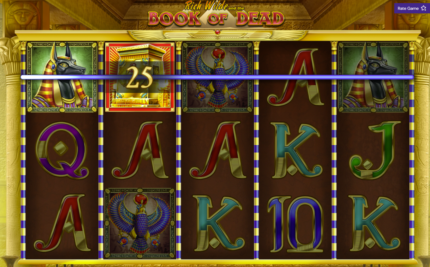 The game transports you to the depths of an Egyptian tomb. The visuals are rich and atmospheric, with detailed symbols of Egyptian gods like Anubis and Horus, along with the explorer Rich Wilde himself. The soundtrack is an epic, mysterious score that builds tension perfectly, especially during the free spins round.